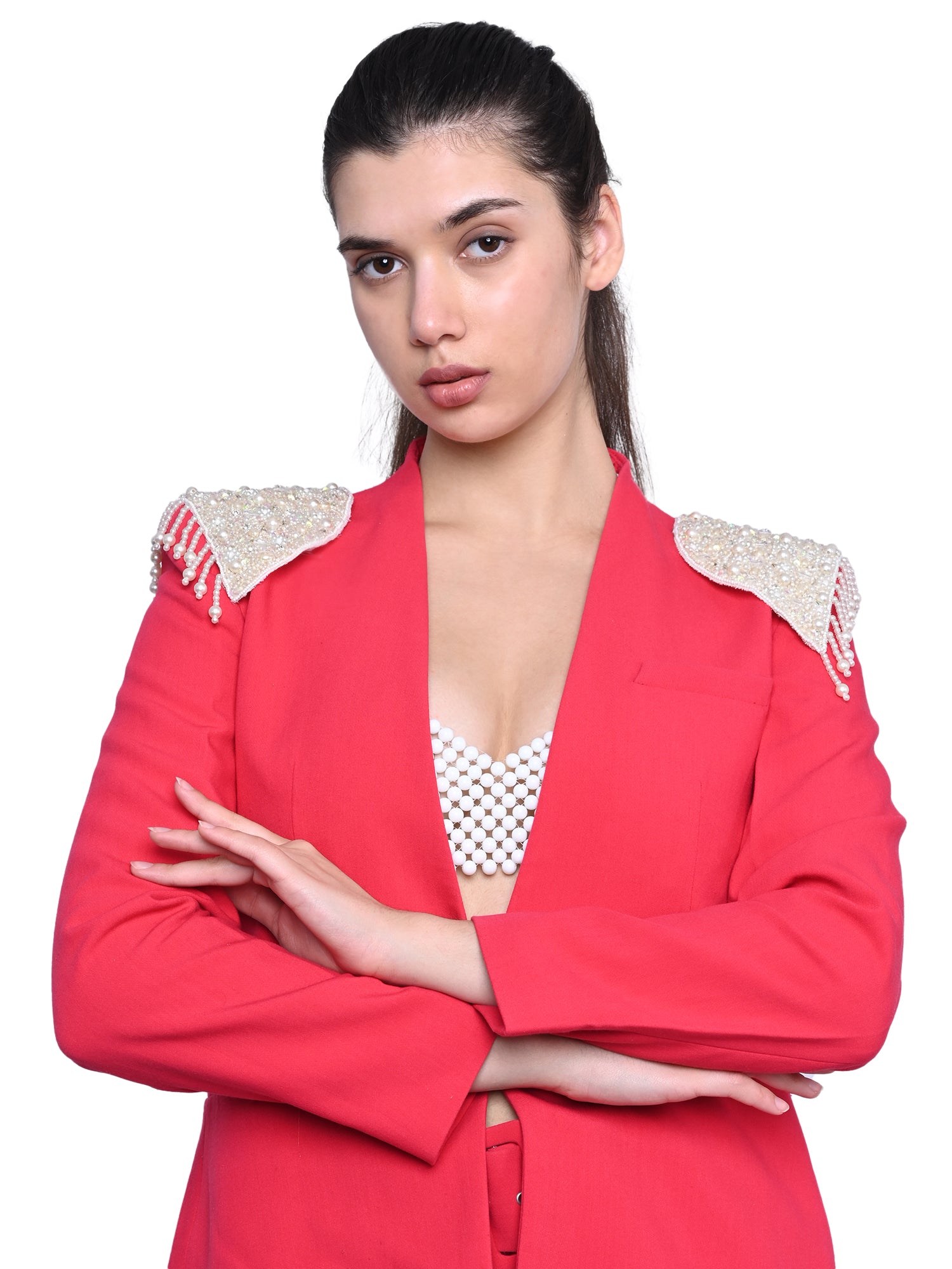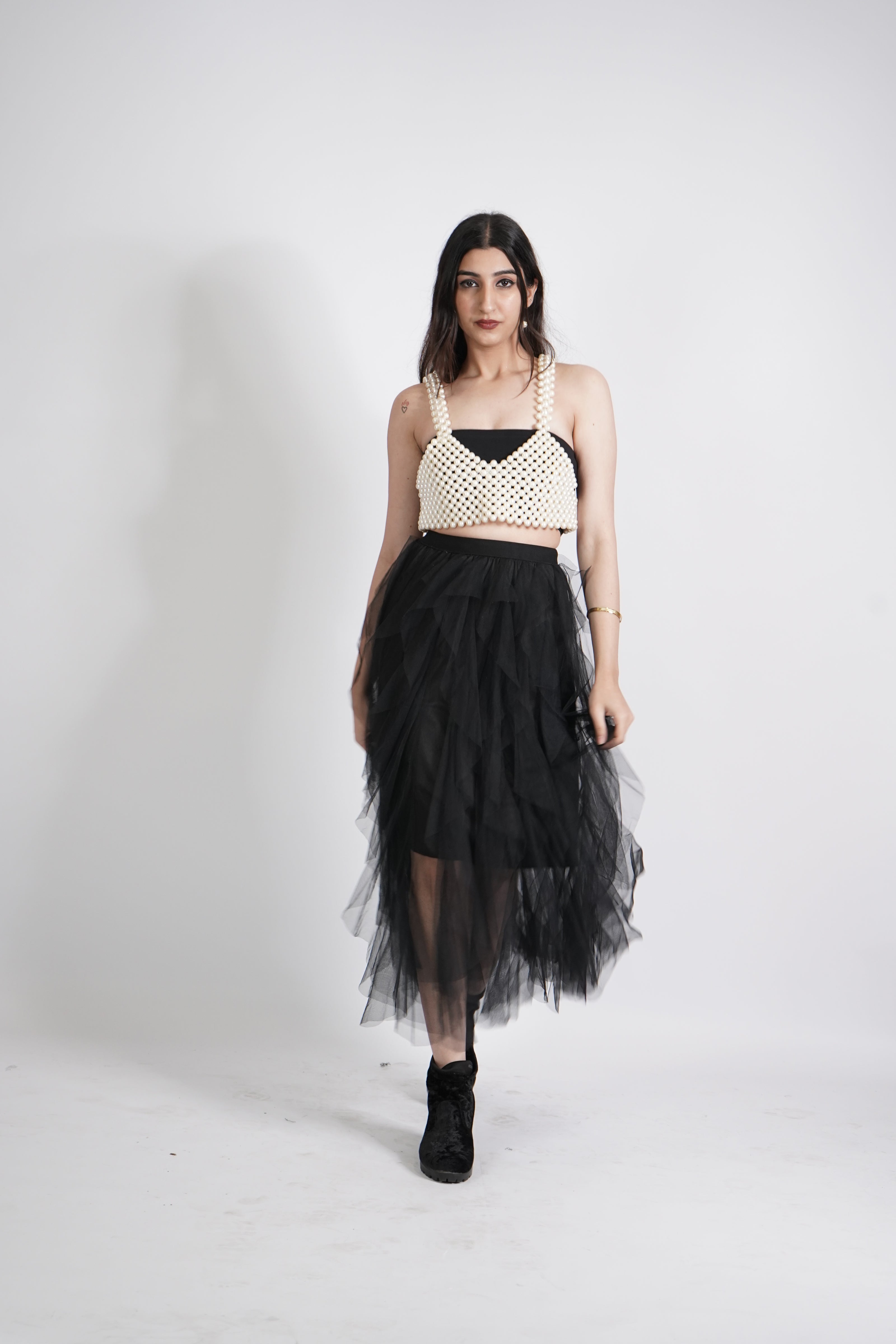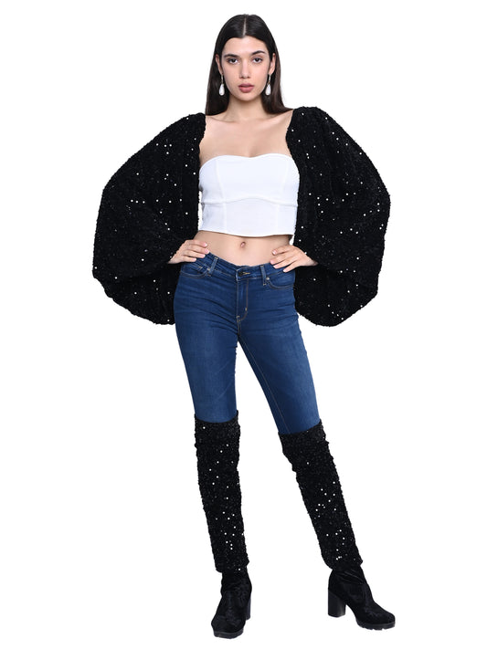 Off-White Party Sleeves with Elegant Stone Embellishments