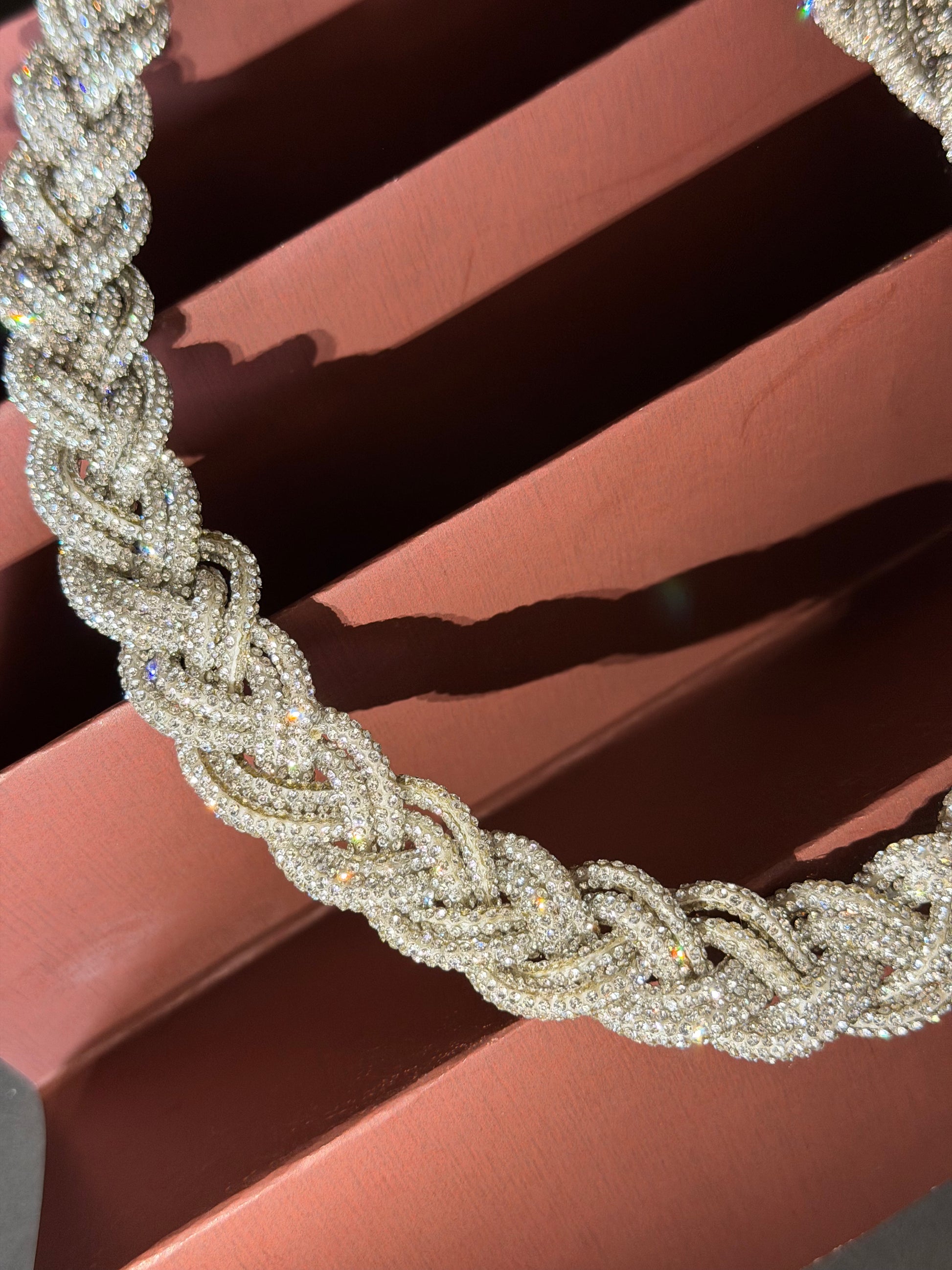 Drape yourself in luminous elegance with the Braided Radiance Silver Necklace — a handcrafted, multi-strand statement choker that catches every glint of light. Designed for the bold and the beautiful, its layered silhouette adds dimension and drama to any neckline. Each piece tells its own story of glamour and grace.